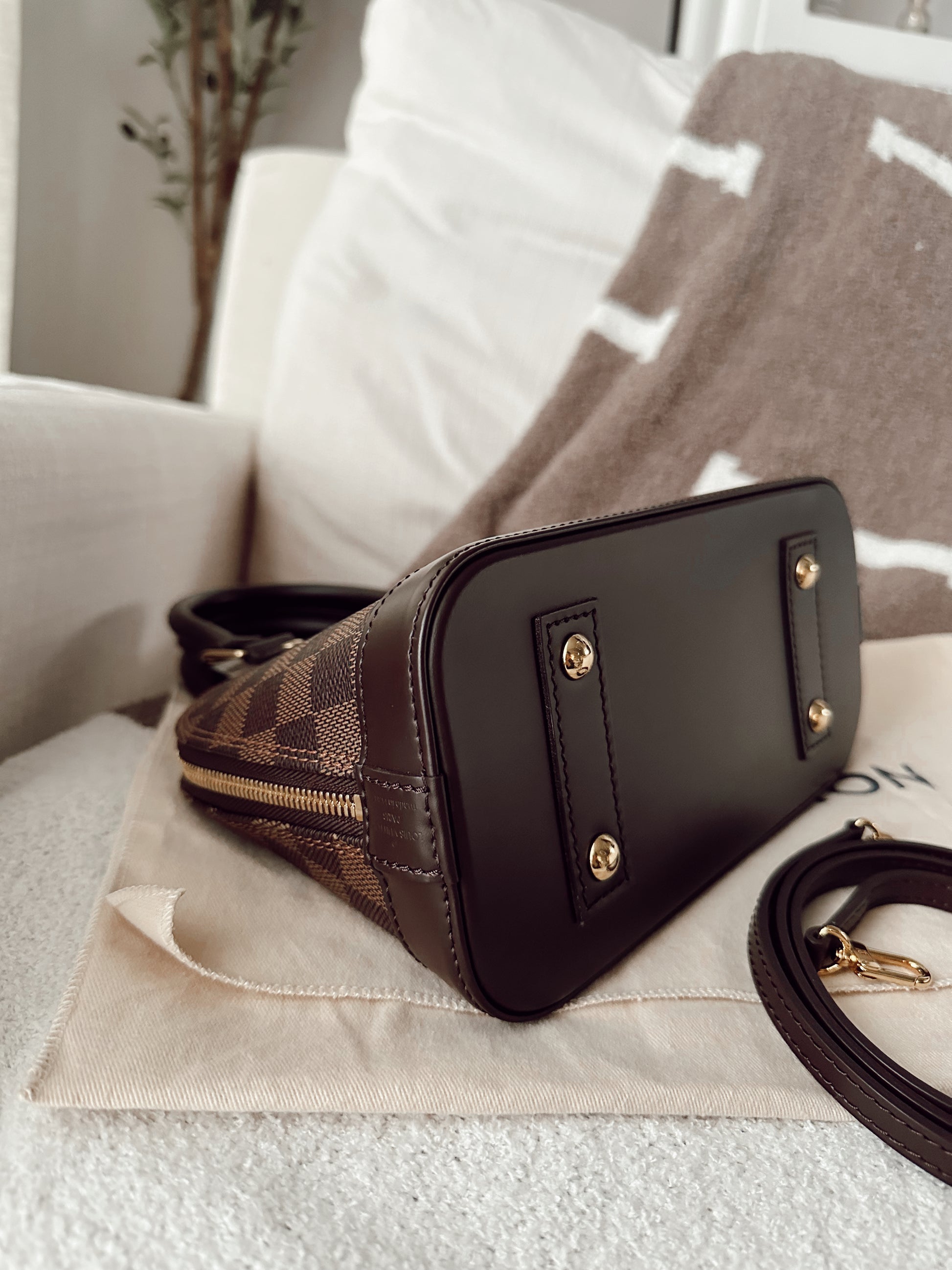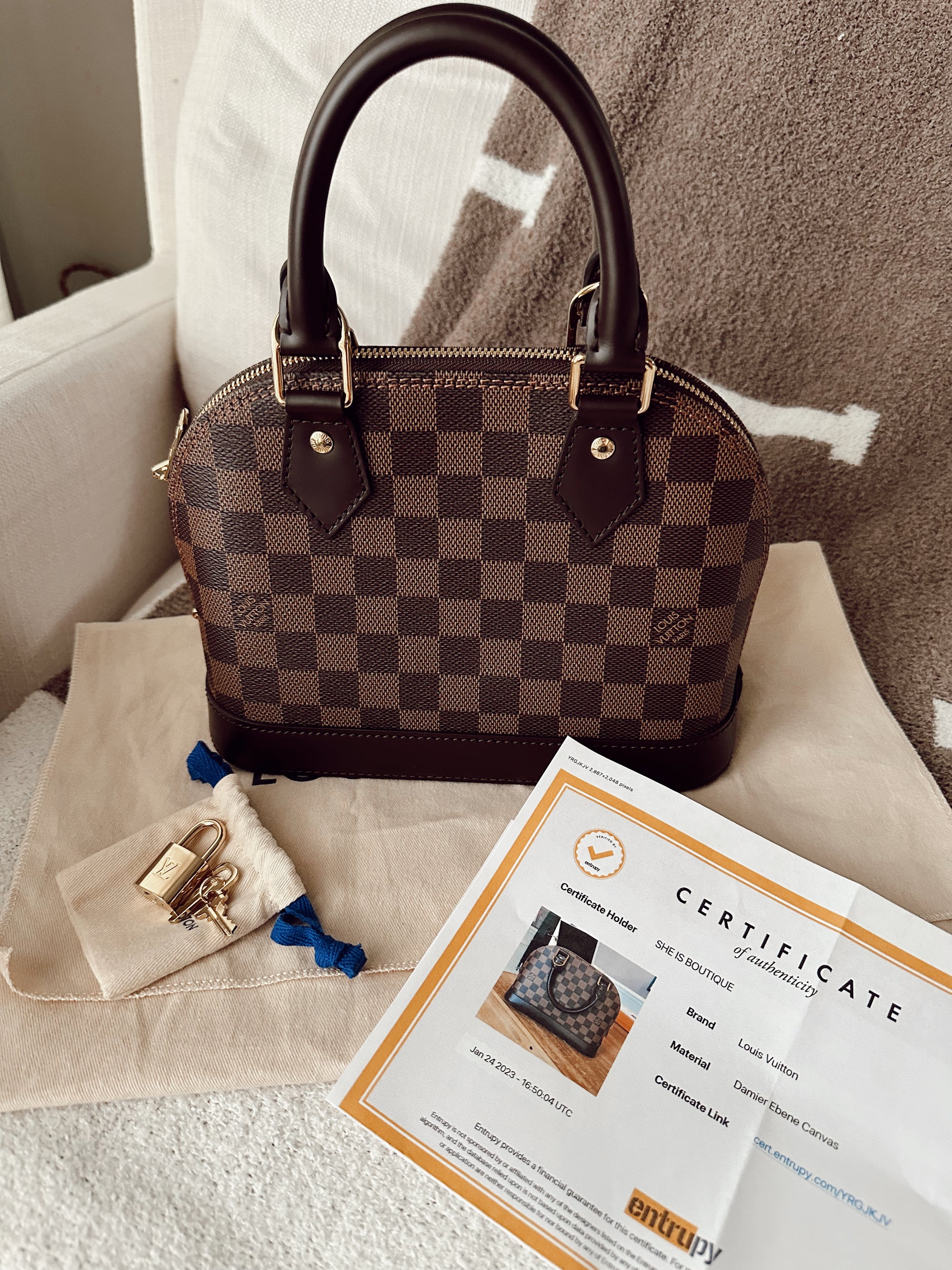 Excellent used condition Alma BB with strap. No heavy signs of wear or damage to bag. Clean interior and exterior. Comes with dustbag and certificate. Does not come with leather tag. Does come with key and lock.