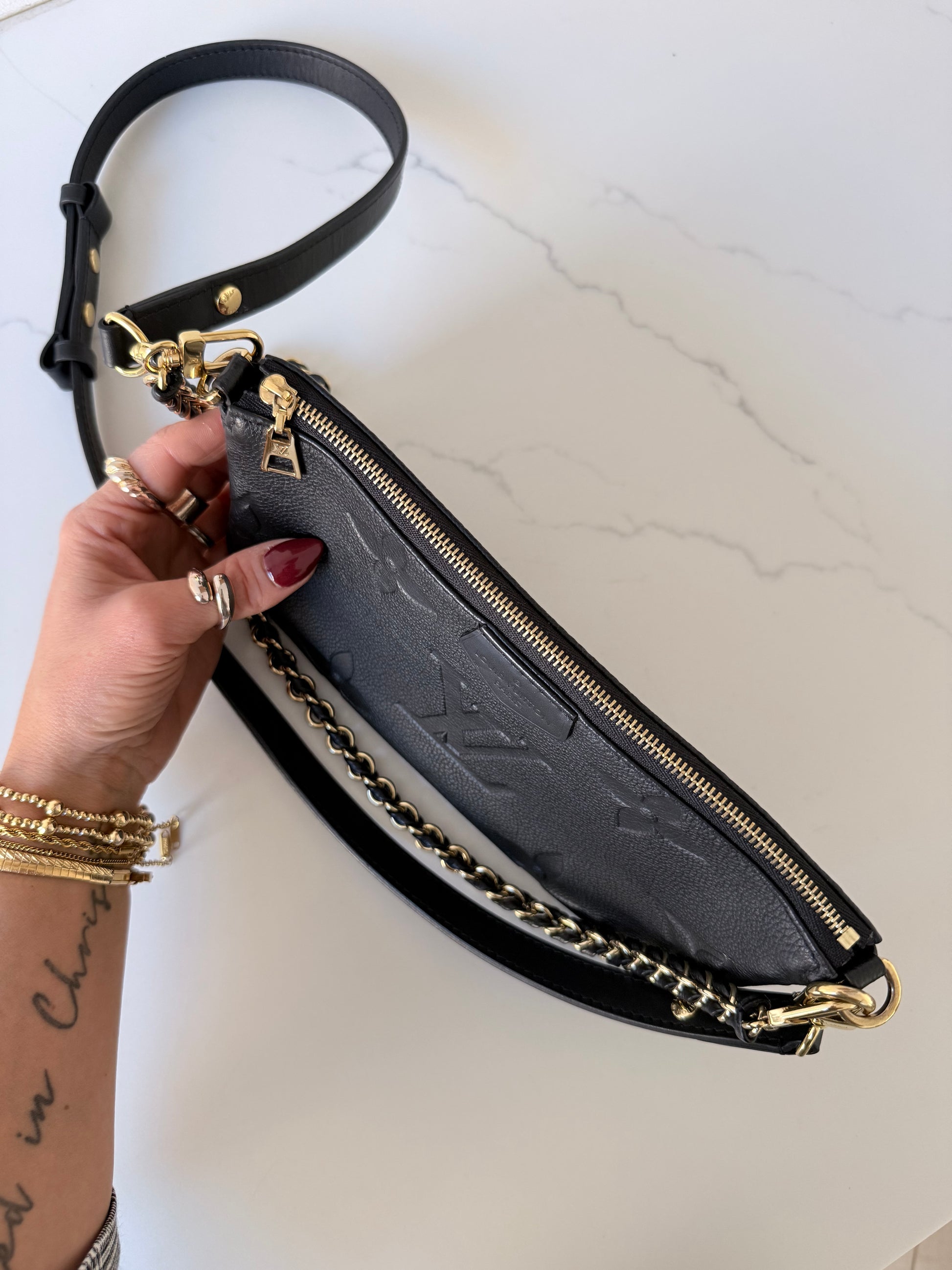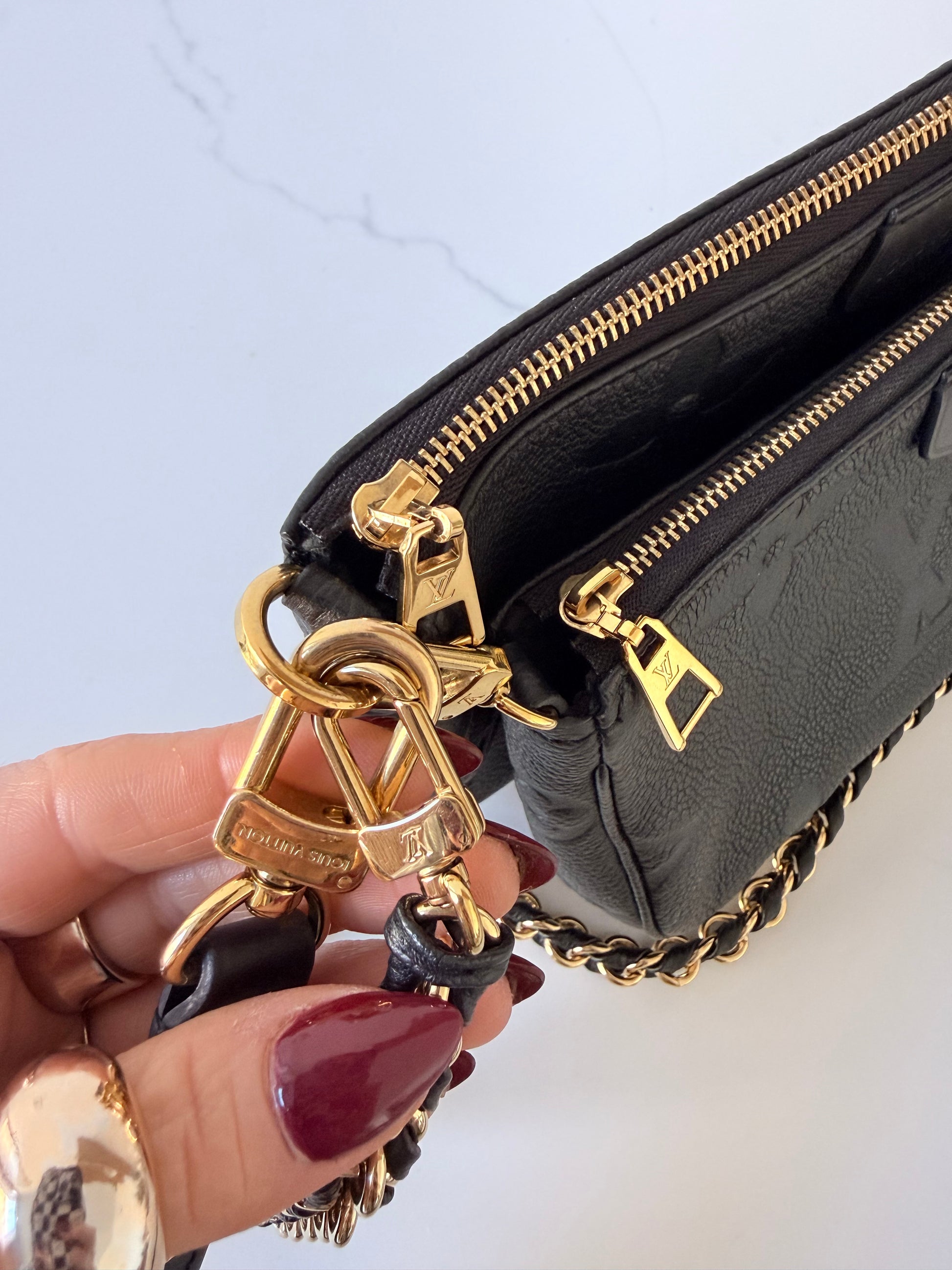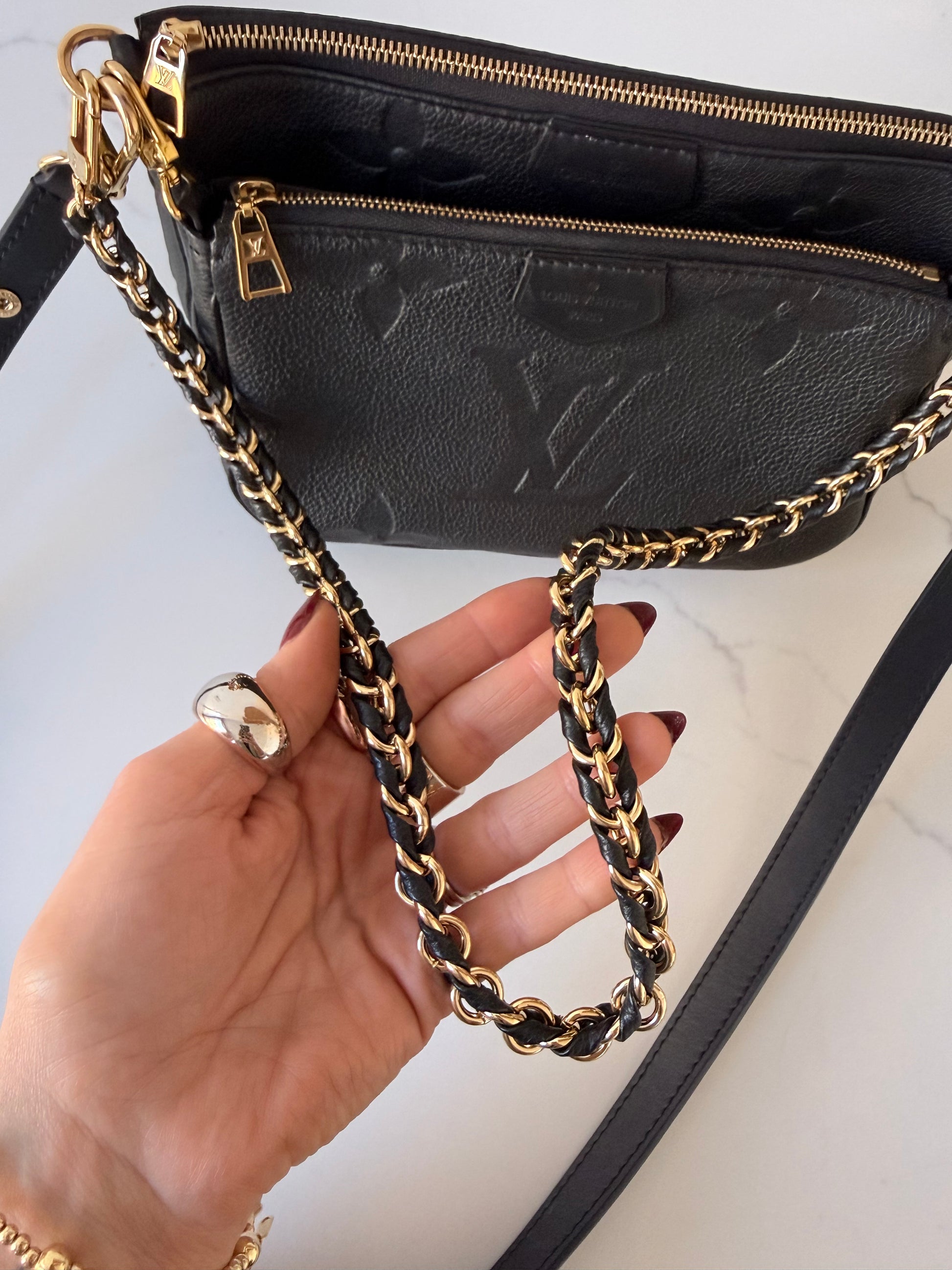 Louis Vuitton multi pochette accessories in monogram empreinte print. Very good condition; clean exterior and interior. Hardware in great condition. Straps are in excellent condition. No heavy signs of wear. Authenticity included