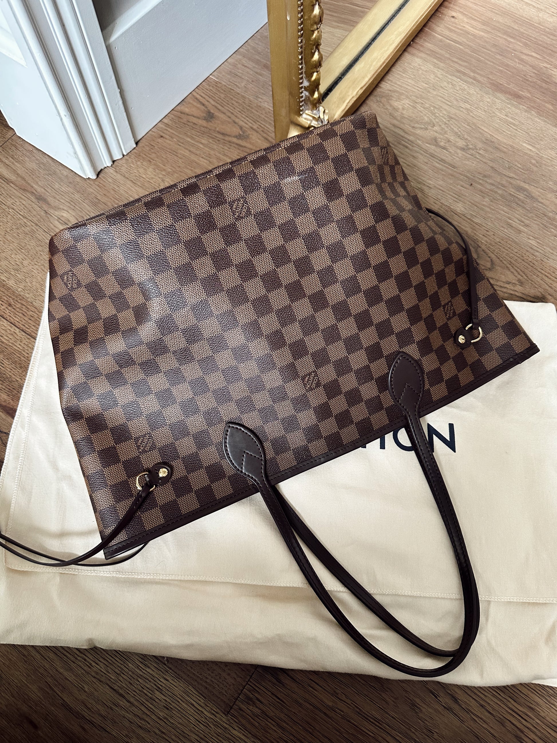 Louis Vuitton Neverfull MM Damier Ebene Rose Ballerine. Excellent used condition, minor interior markings nothing major. Clean Cornes, edges and bottoms. Top handles in excellent condition. Includes Louis Vuitton dustbag and box.