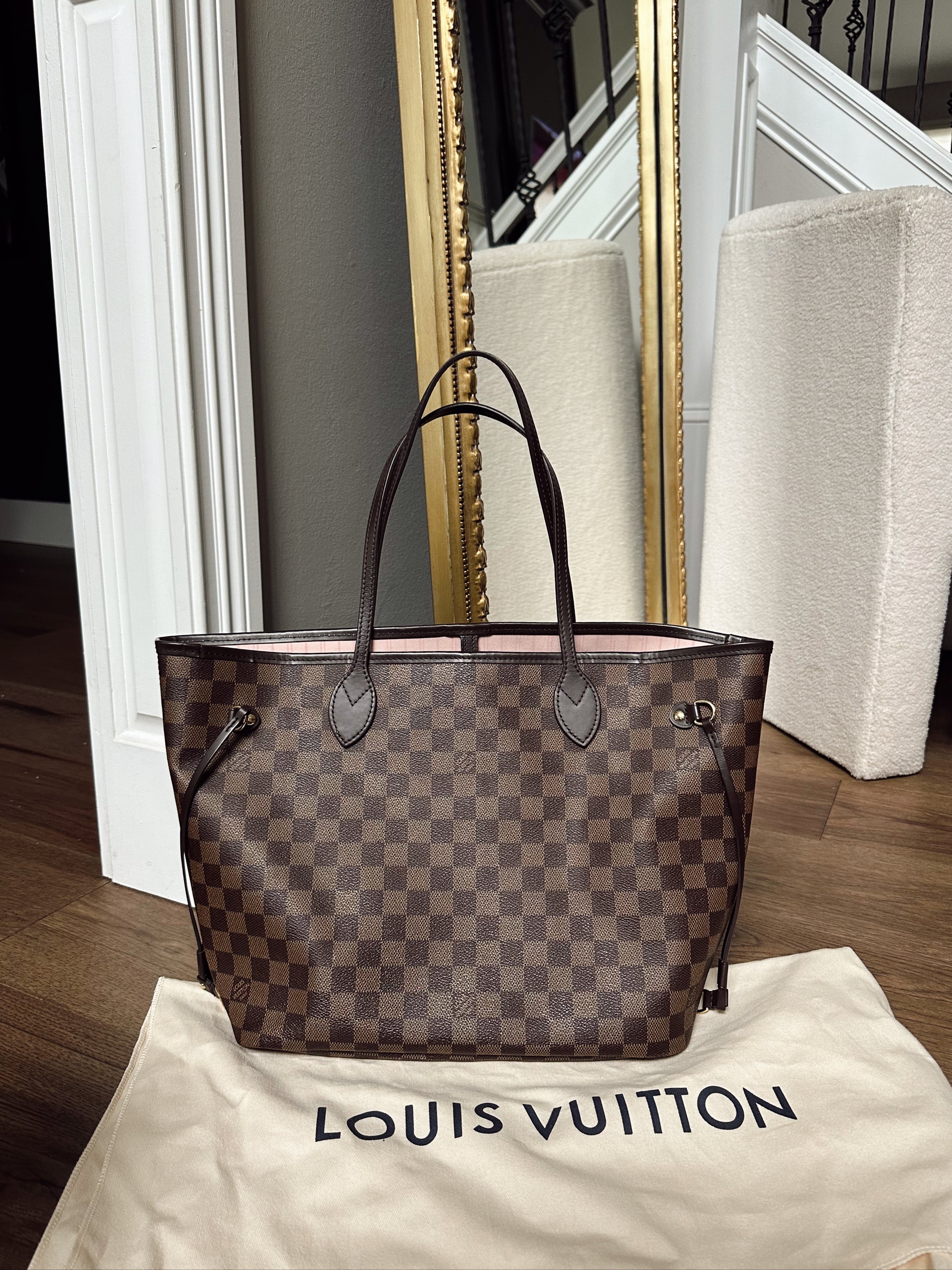 Louis Vuitton Neverfull MM Damier Ebene Rose Ballerine