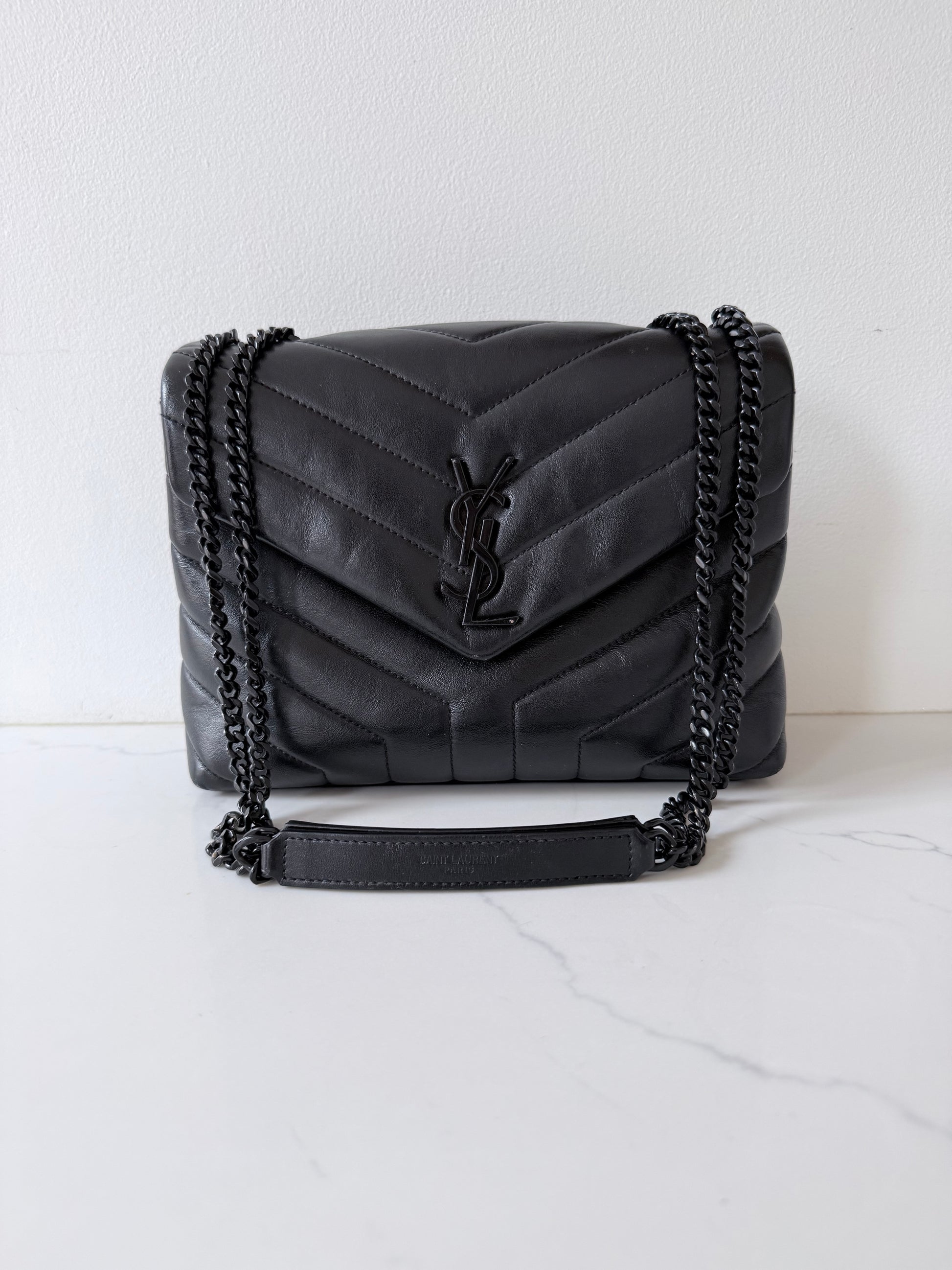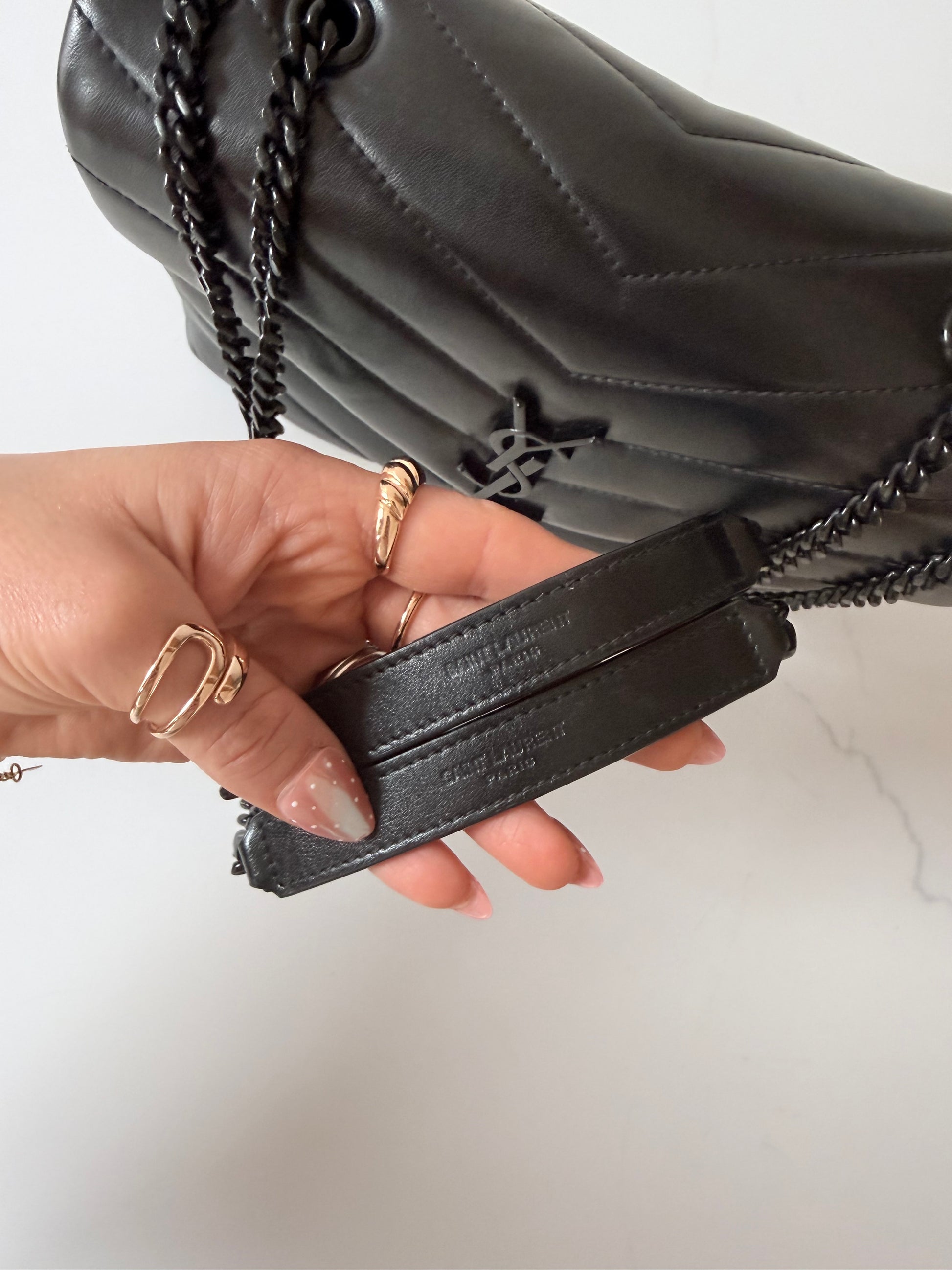 Saint Laurent YSL chevron in small black with black hardware. Gently used condition. Clean interior and exterior. Hardware is in excellent condition. Authenticity and dustbag is included.